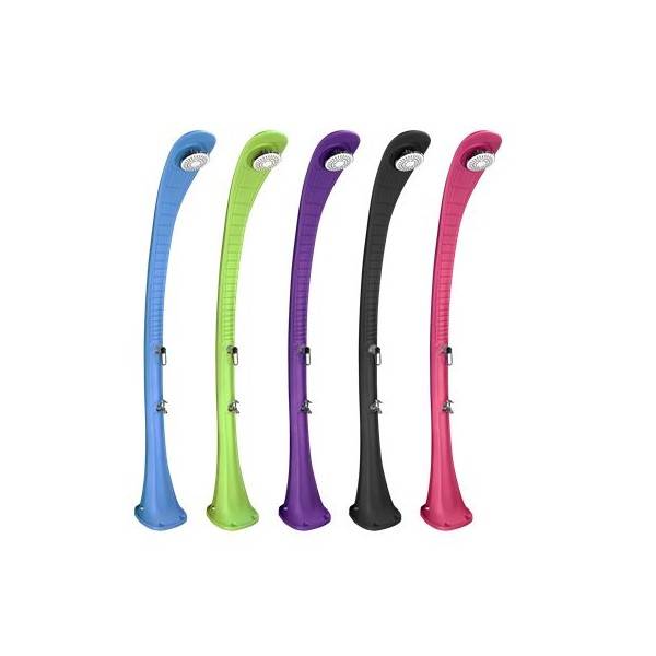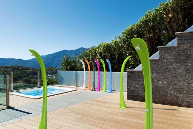 Cette douche solaire devient un élément décoratif à part entière dans