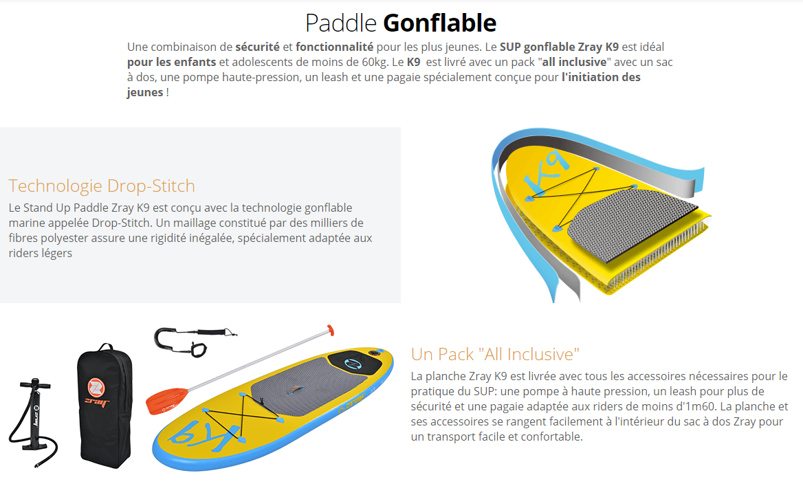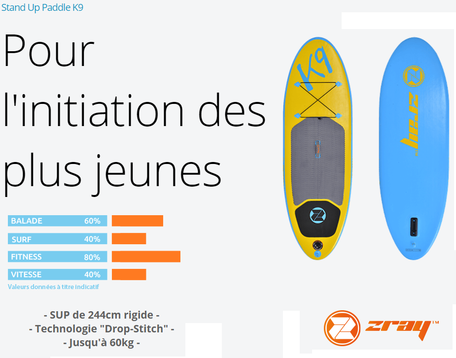 Le paddle K9, est un stand up paddle idéal pour les enfant jusqu'à 12 ans. Au delà il est préférable de passer sur le modele adulte.