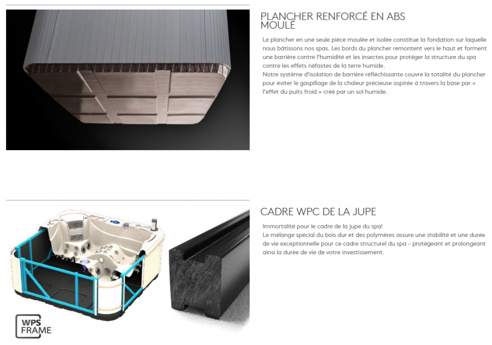 Immortalité pour le cadre de la jupe du spa! Le mélange spécial du bois dur et des polymères assure une stabilité et une durée de vie exceptionnelle pour ce cadre structurel du spa protégeant et prolongeant ainsi la durée de vie de votre investissement.