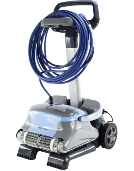 Un chariot de transport pour placer le robot et enrouler le câble est inclus en standard. Le robot de piscine Zenit 30 a une longueur de câble de 18 mètres et convient aux piscines d'une longueur maximale de 15 mètres. L'unité fait à la fois le fond et les murs. Le pivot garantit que le câble ne se tord pas à l'usage. La télécommande incluse permet de contrôler ou de régler manuellement le robot.