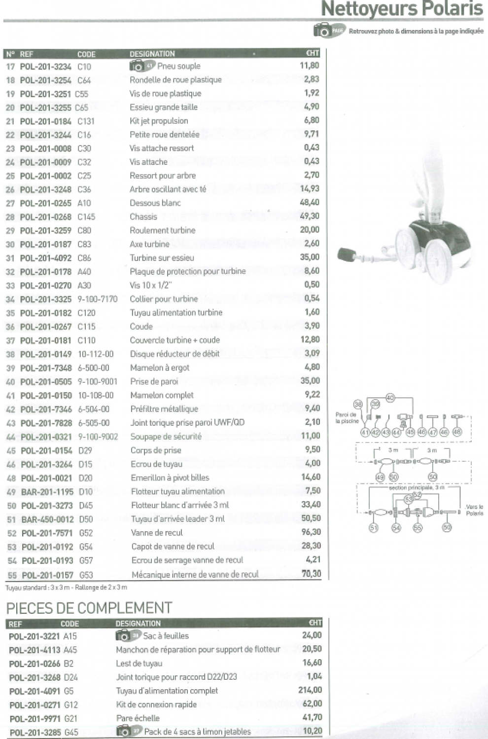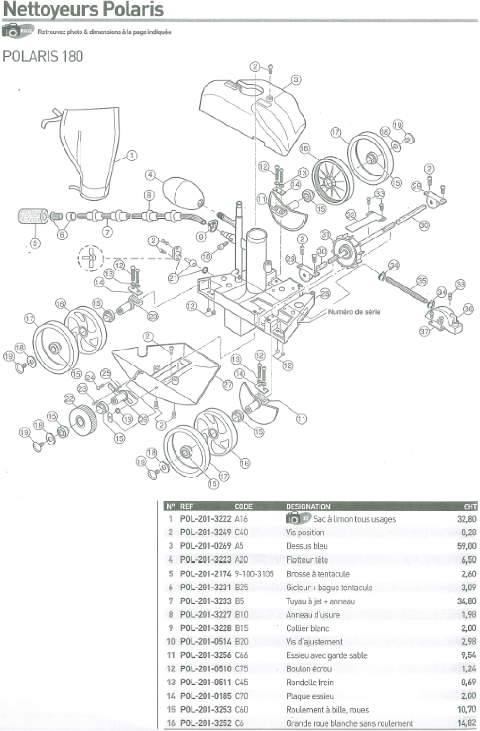 Ci joint en photo les pièces détachées du robot hydraulique polaris 180