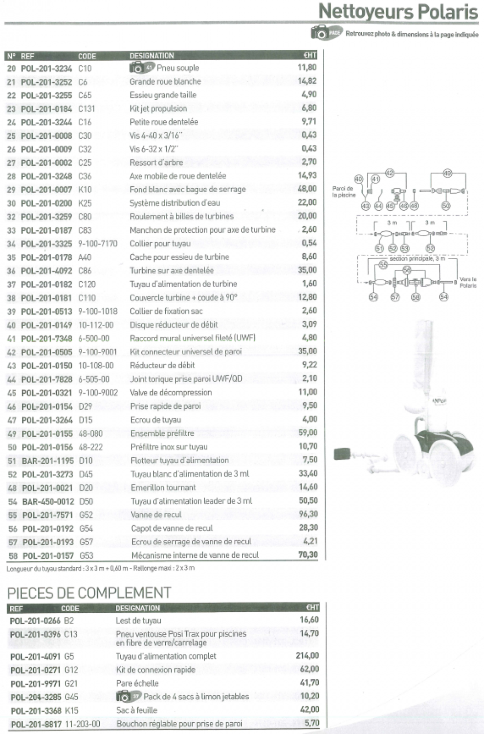 Ci joint en photo les pièces détachées du robot hydraulique polaris 280
