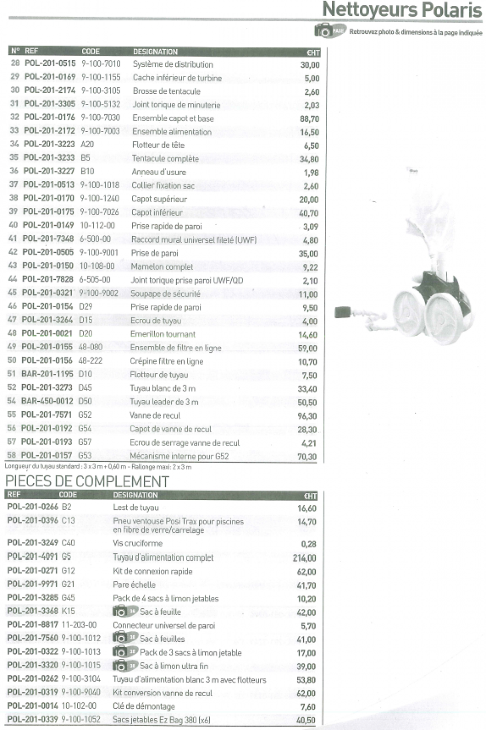 Ci joint en photo les pièces détachées du robot hydraulique polaris 380