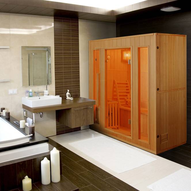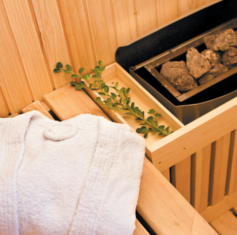 Le sauna vapeur est une invitation à reproduire leurs rituels ancestraux. Leur religion ancestrale recommandait l’utilisation du sauna vapeur pour purifier l’âme, l’esprit et le corps. Aujourd’hui, le sauna traditionnel vapeur est doté un poêle électrique qui chauffe des pierres de lave. Vous versez de l’eau sur les pierres chaudes afin de générer de la vapeur. Vous pouvez y ajouter des herbes aromatiques* ou des huiles essentielles*. La chaleur de l’air est plus haute en température que dans une cabine infrarouge, elle peut atteindre 90°C. Chargée en humidité, elle permet de prendre un véritable bain de vapeur.