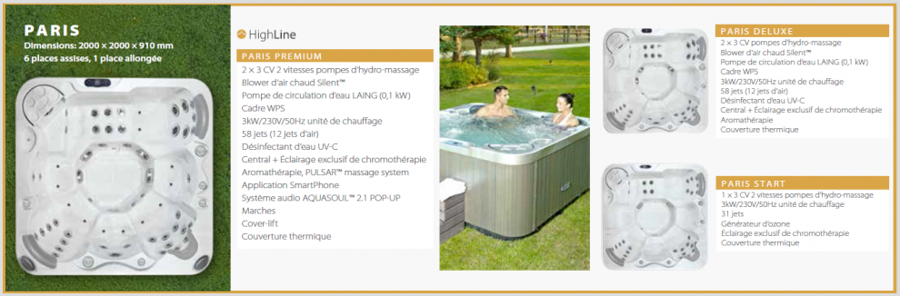 Le spa Paris, le spa familial par excellence... Le spa le plus adapté et équipé du marché, il sera parfait pour des moments de détente en famille ou entre amis... Spa le plus vendu de la marque Wellis Phybris.