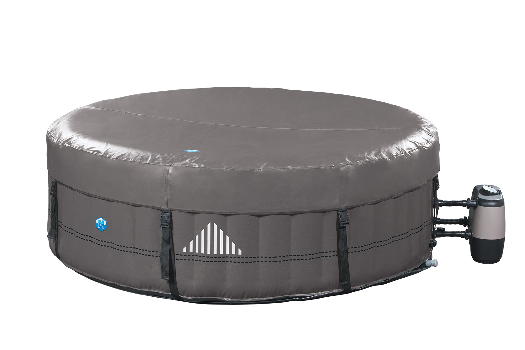 Gris taupe avec une finition similicuir ultra-résistante, ce spa se distingue par les discrètes bagues qui couronnent sa structure et un motif graphic moderne. Elégant, il se fond dans tous les décors: intérieur contemporain ou classique et même dans le jardin.