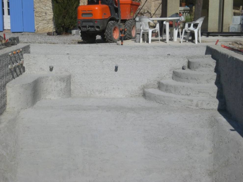 Une fois la piscine coulée, il faudra laissé sécher le béton durant 3 semaines pour garantir un béton de bonne qualité. Cette durée peut varié selon la période de la saison où l'on réalise cette opération. Une fois le béton coulé et sec, il restera plus qu'à réaliser l'enduit de redressage et le revêtement final du bassin.