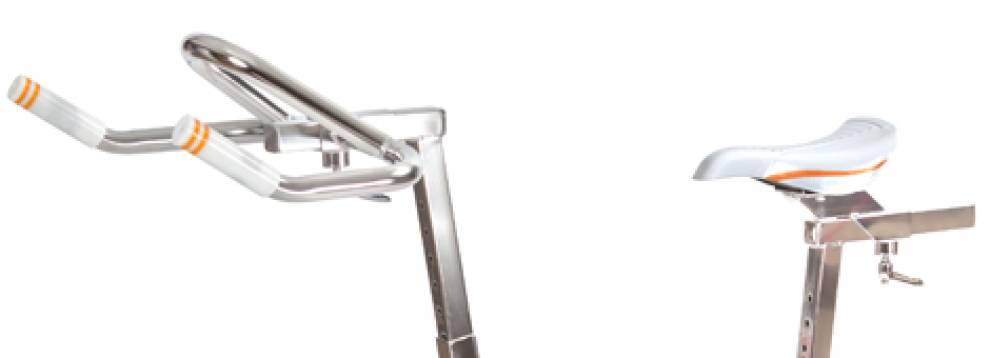 La distance entre les pieds et la selle a été réduite pour une sensation plus réaliste et afin que l’aquabiker soit plus en harmonie avec son appareil. La biomécanique a été respectée pour être en phrase avec l’anatomie de chacun.